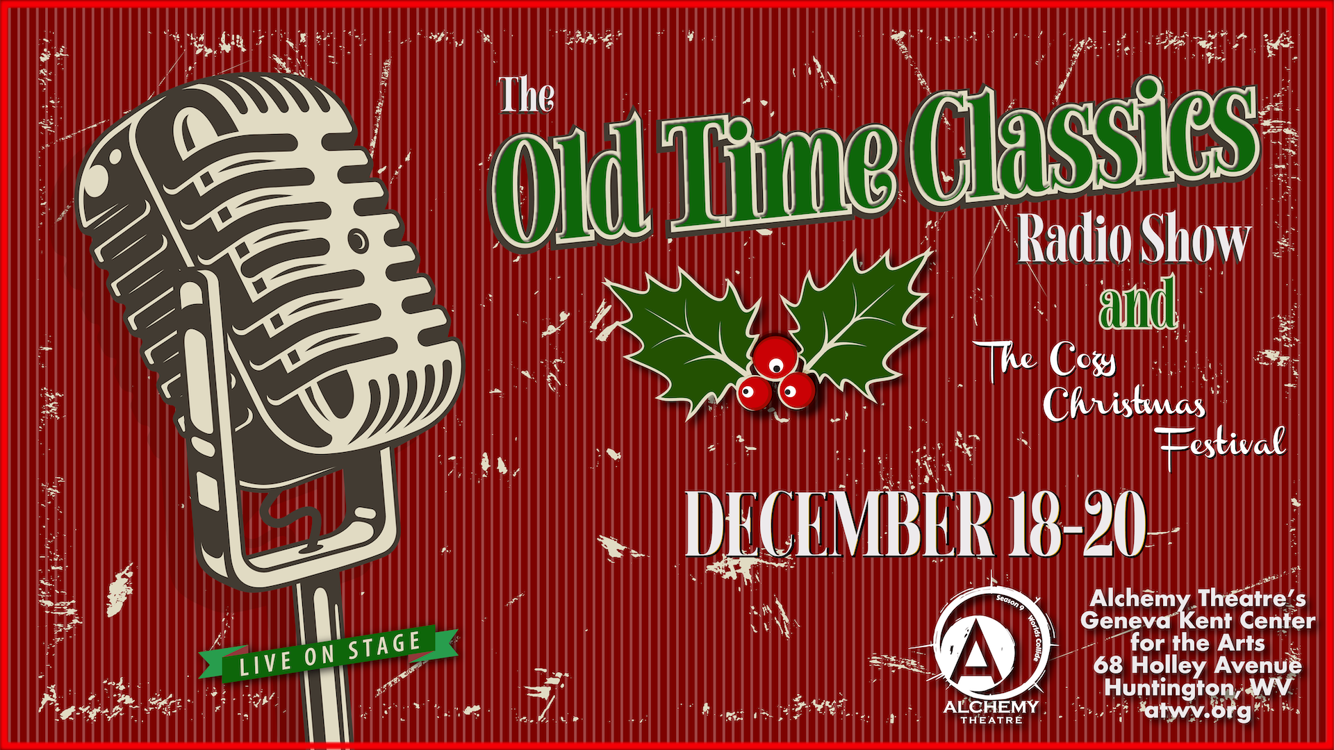 The old time Christmas Radio Show will be another low bar, reader's theater show with live sound effects performed on stage as the story is read by a full cast of actors, just like they did before the advent of television and moving pictures!